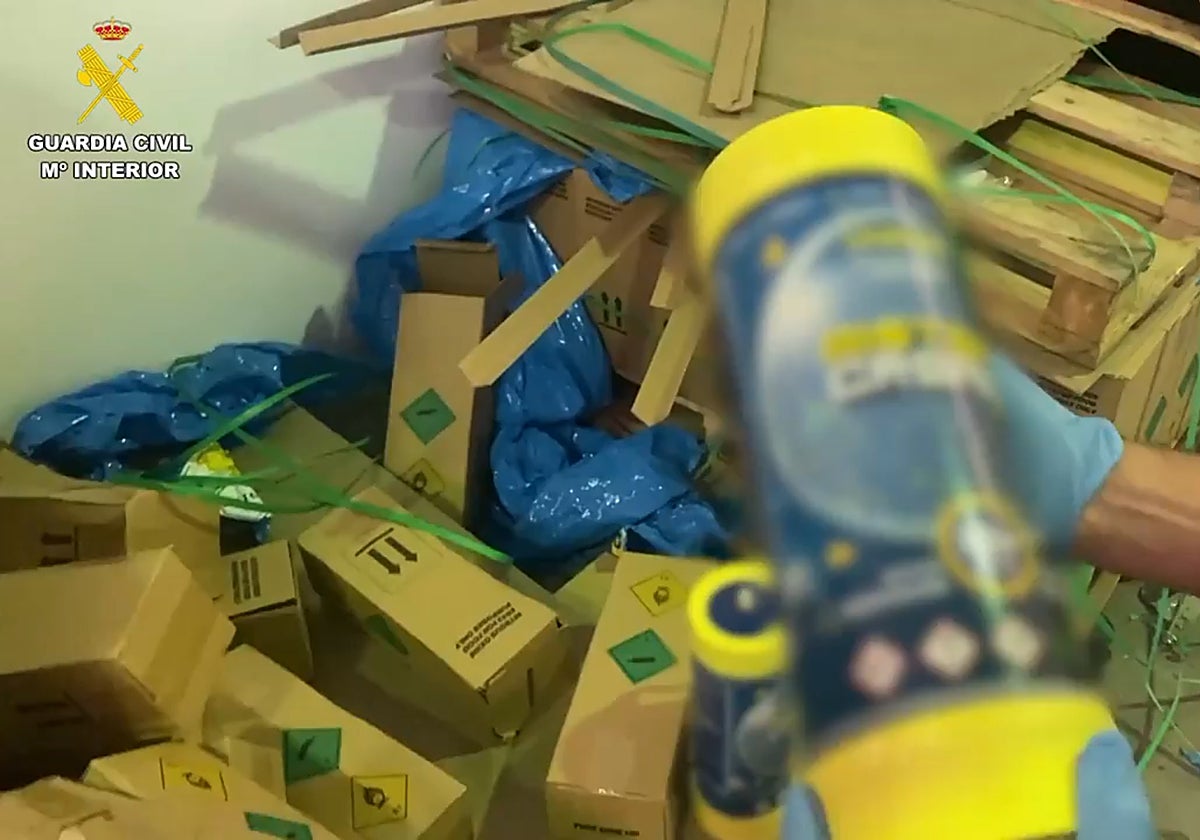 In the search of the warehouse, 21,302 litres of laughing gas in bottles were seized. According to Guardia Civil, it is the largest seizure of this type of substance in Europe. Five people of different nationalities were arrested. One of those arrested had numerous previous convictions for similar offences.