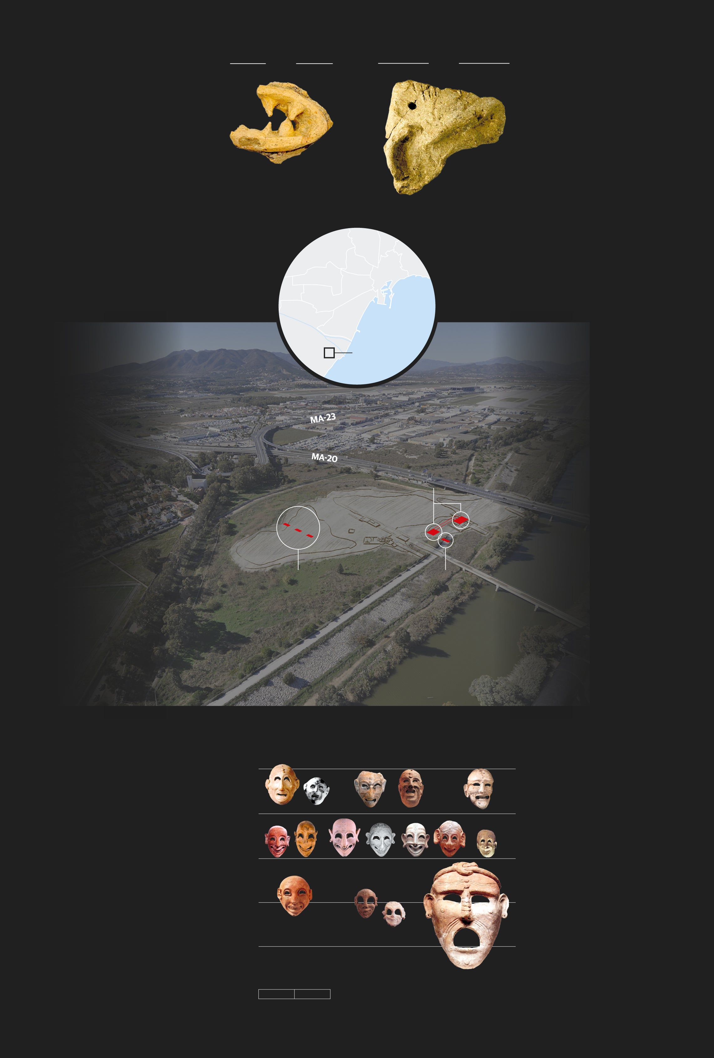The unexpected discovery of terracotta masks at the site shows the practice of cult activities on the ancient island at the mouth of the Guadalhorce river