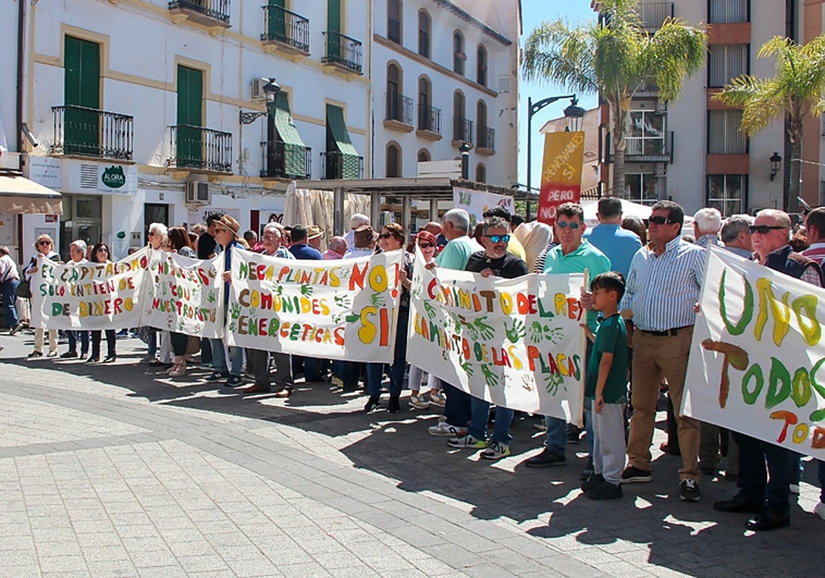 Residents of Álora and other areas of the Guadalhorce valley demonstrated in the town’s Fuentearriba Square on Saturday under the slogan 'Renewables yes, but not like this' to demand "an ecological transition" after the proliferation in recent years of photovoltaic megaplant projects.