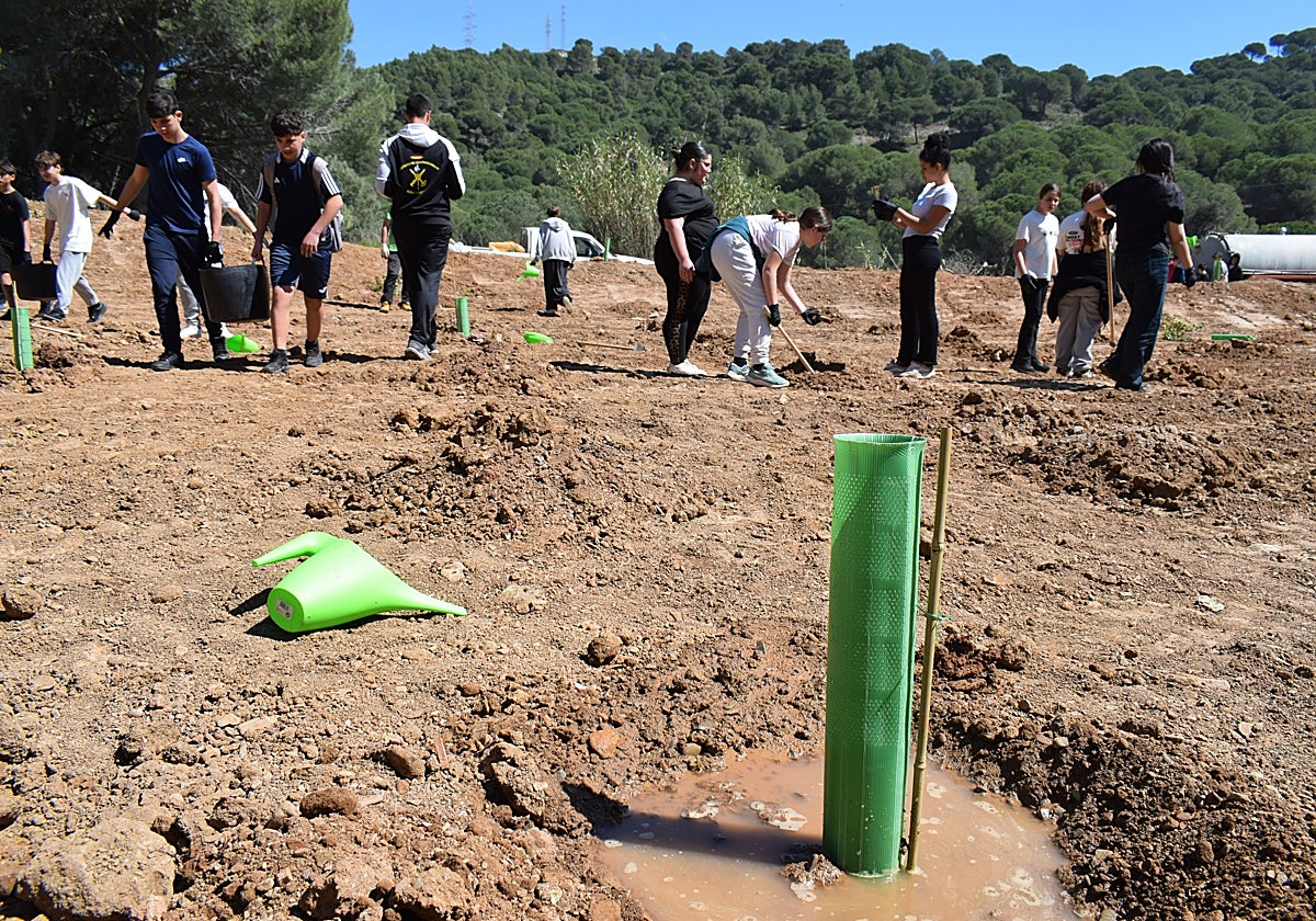 Some 30 pupils from Huerta Alta secondary school headed up to the hills around Alhaurín de la Torre to participate in an environmental activity that has made it possible to plant 100 trees and shrubs in the Sierra Llana mountain range.