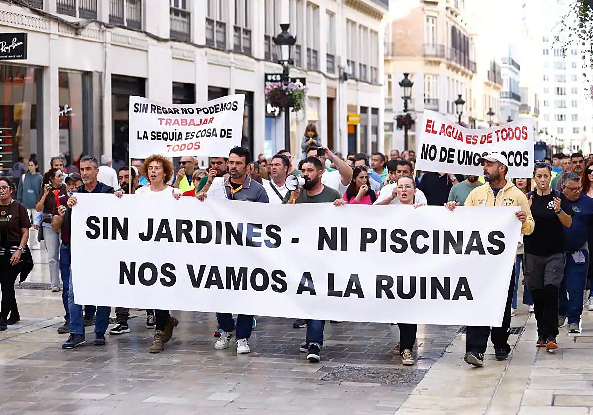 "Without gardens and swimming pools, we are going to ruin," was the main slogan when gardeners, lifeguards and other businesses affected by the Junta de Andalucía's drought regulations took to the streets to protest in Malaga city last week.