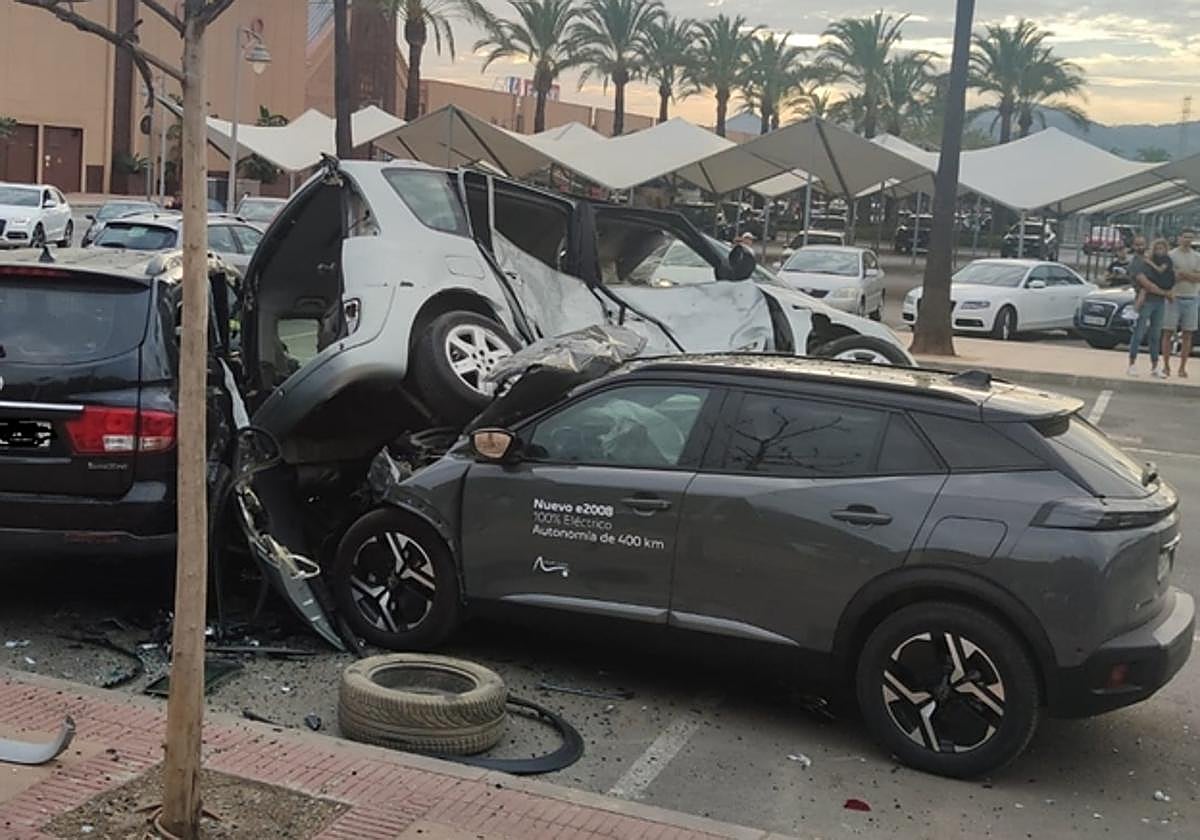 The vehicle mounted the pavement and went through a small garden area before crashing into two vehicles parked on the side of a road parallel to Avenida Juan Carlos I.