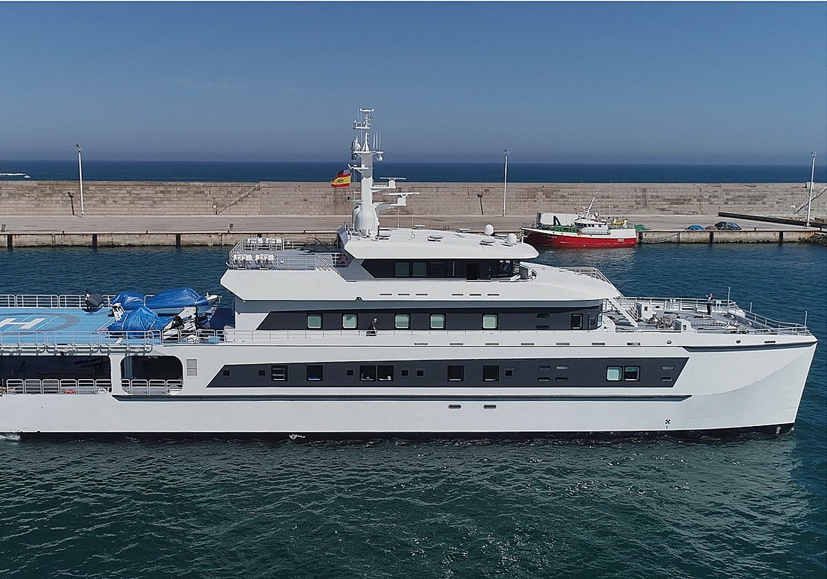 The Wayfinder support vessel, which was built in Lugo, offers a top speed of 21 knots and is dedicated to general provisioning and support tasks, to transport fuel, provisions, etc. for the main vessel. However, this craft can also accommodate 12 passengers and 18 crew members, and includes a helipad which - when not in use - becomes a pickleball court (a racquet sport) and offers jet skis and diving equipment, to keep guests amused.