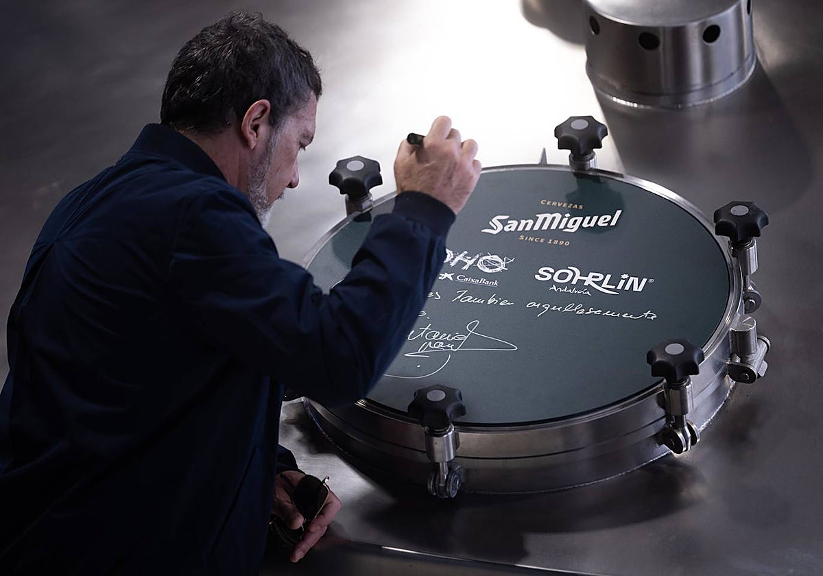 During the visit to the brewery, Antonio Banderas also left his mark on the factory's machinery with his signature and a dedication in which he played with the brand's recent slogan: "Like you, also proud to be from Malaga".