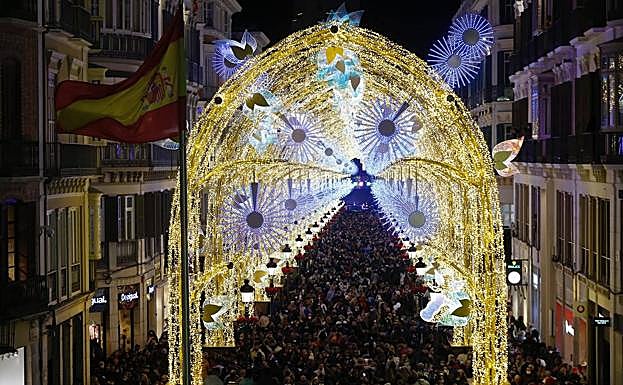 In the main central shopping street Calle Larios, a ‘Christmas forest’, a huge structure made up of 22 arches and thousands of strings of lights, has been set up and it burst into life when journalist María Casado flicked the switch.
