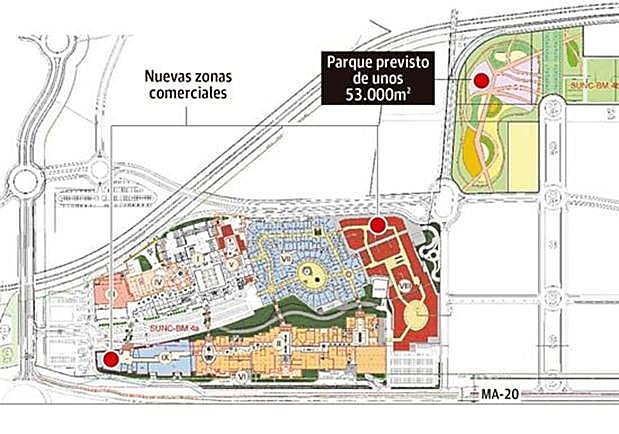 The companies that own the shopping centre (Plaza Mayor Shopping, Doc Malaga Siteco and Doc Malaga Siteco Phase 2), with the advice of the consultancy firm Ejecución del Planeamiento, have planned the extension of the shopping park and the luxury outlet of Plaza Mayor with an estimated investment of 105 million euros. The plans include a 14,000-square-metre expansion of the McArthurGlen Designer Outlet to the east, over part of the Mercadona supermarket car park, and a further 7,500 square metres for the extension of the existing Plaza Mayor shopping centre to the west, occupying part of the car park next to the Guadalmar motorway.