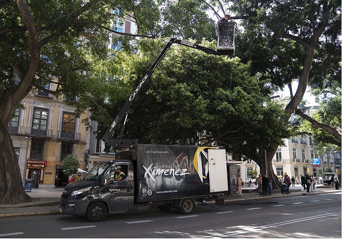 Although it is more than two months away, Malaga has begun the countdown to the start of Christmas. Two crews of workers from the Cordoba lighting company Ximénez have begun to install the electrical installation on which the lights will be placed.