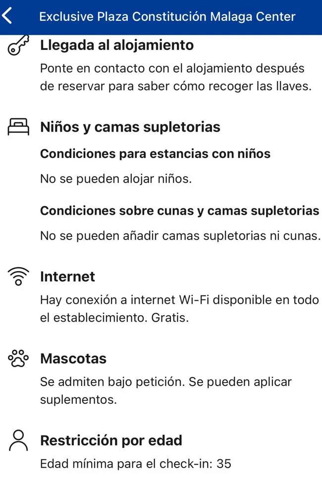 The Spanish consumers' organisation, Facua, has reported the tourist apartment Exclusive Plaza Constitución Málaga Center to the general directorate for tourism of Andalucía's regional government for preventing people under 35 years of age from booking it and checking in.