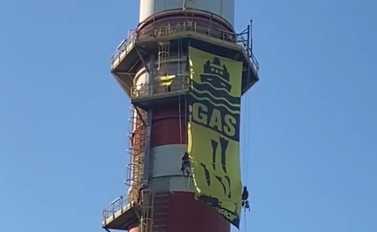 Greenpeace activists scale power plant chimney in Malaga to protest use of ‘Russian gas’