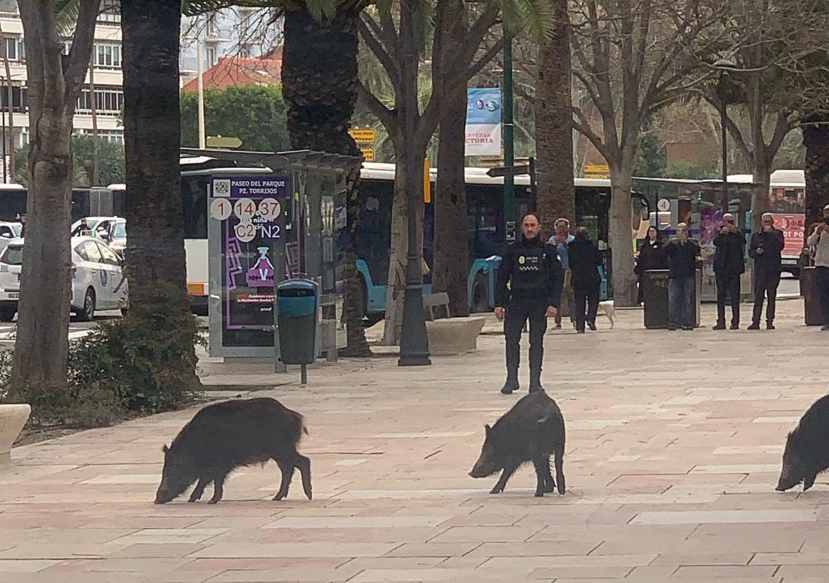 Wild boars have recently been paying visits to Malaga city, but passers-by were particularly surprised on Thursday morning when three of them took a walk around the central Parque de Málaga. Local Police officers, in collaboration with animal experts, managed to cordon off the area and capture the animals by attracting them with food.