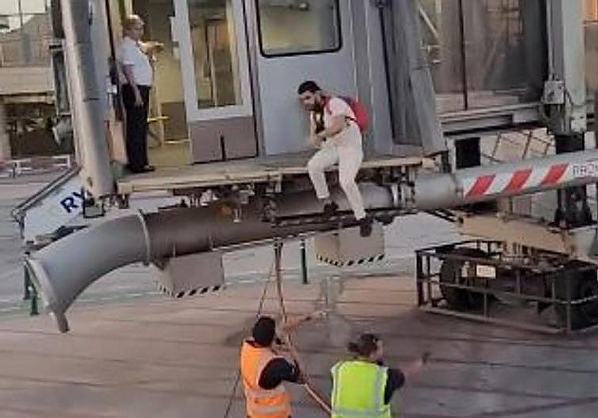 The incident went viral on social networks through a video in which the man can be seen jumping off the air bridge that had been used for passengers to access the plane bound for Morocco, and onto the runway, even though the aircraft had already started moving away.
