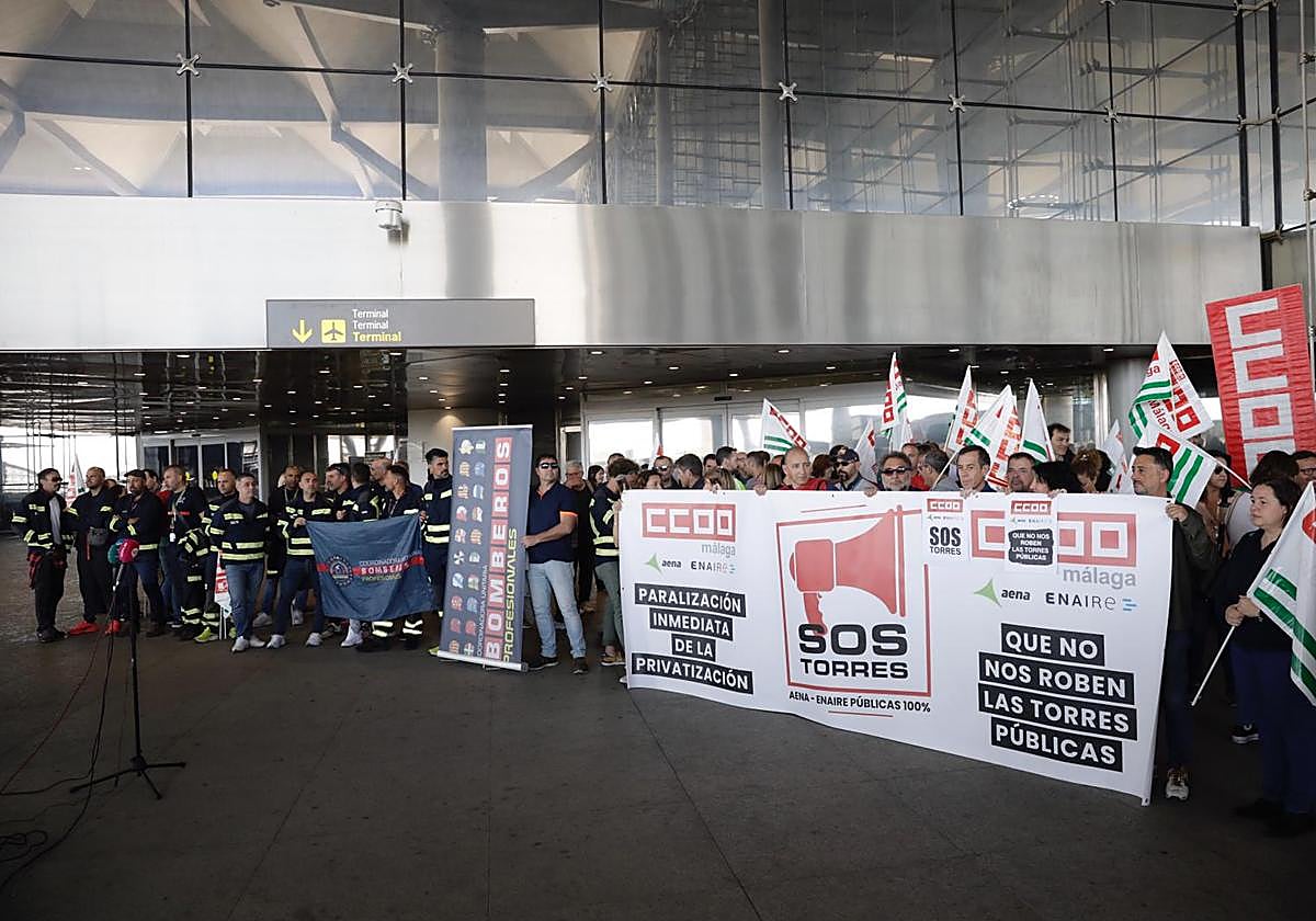 The protest that was called at the doors of Terminal 3 was attended by air traffic controllers and added the support of the airport firefighters, who wanted to show "solidarity" with their colleagues. According to Muñoz, it was a clear example that "there is full awareness among the entire workforce of taking the step to strike if, finally, the tower is privatised."