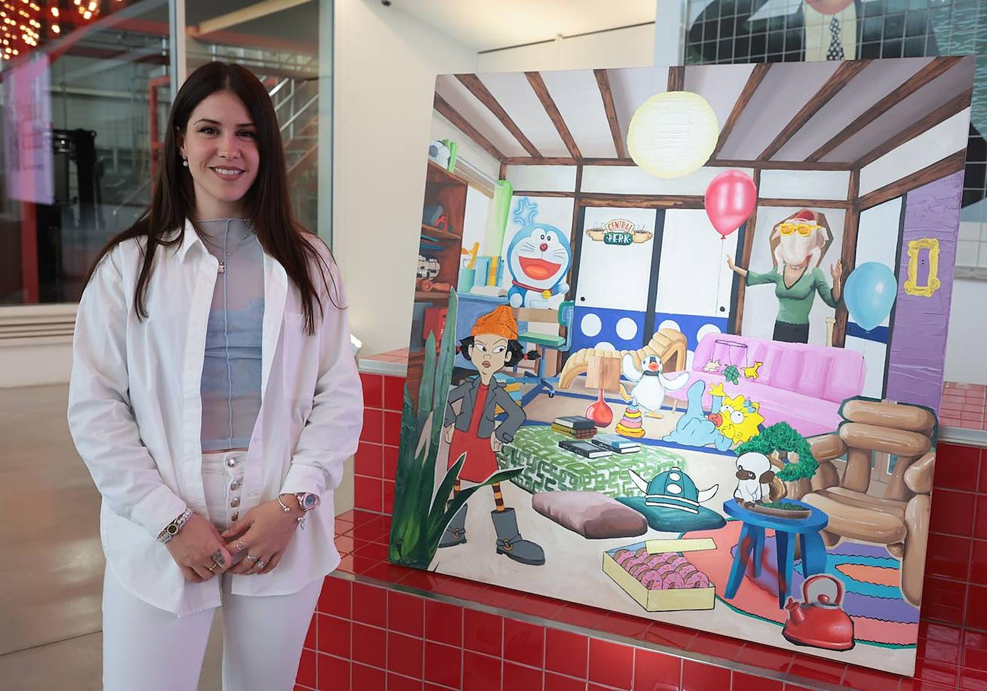 The artist brought her work La Habitación de Nobita Nobi (Nobita Nobi's Room), in which she pays homage to children's television series by putting the monkey Amedio from Marco, baby Maggie from The Simpsons, the helmet from Vicky the Viking and the popular character from Doraemon (the namesake of this canvas) all in the same room. A work that connects quickly, although with a very different message from the first glance.