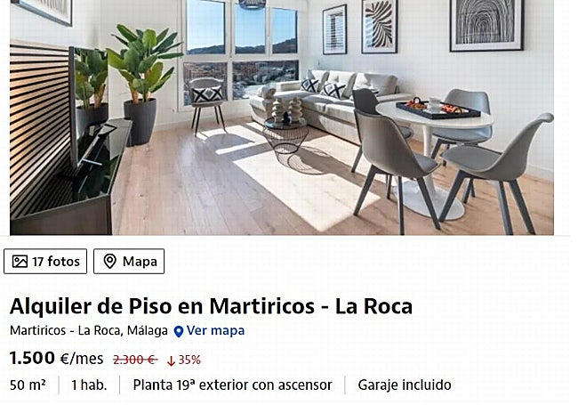 On Idealista, as of yesterday, of the 1,400 properties offered for rent in Malaga city, there are 114 that have been reduced in price. Of these, 33 have a discount of more than 10%. The most obvious example is in Martiricos towers where last February, when both buildings were officially opened for business, a flat rental advertised at 4,500 euros per month went viral. Among the rents that have fallen the most in price on Idealista are several located at those towers. These twin blocks are now gaining a reputation due to the problems of coexistence between residents and tourists staying in a considerable number of tourist apartments there. Some examples: a one-bedroomed flat of 50 square metres that was advertised at 2,300 euros is now at 1,500, another of the same size that was at 1,600 is now at 1,250 and a three-bedroomed flat that was at 3,900 euros is now at 3,000. In other words, yes, they have gone down, but they are still not at market price.