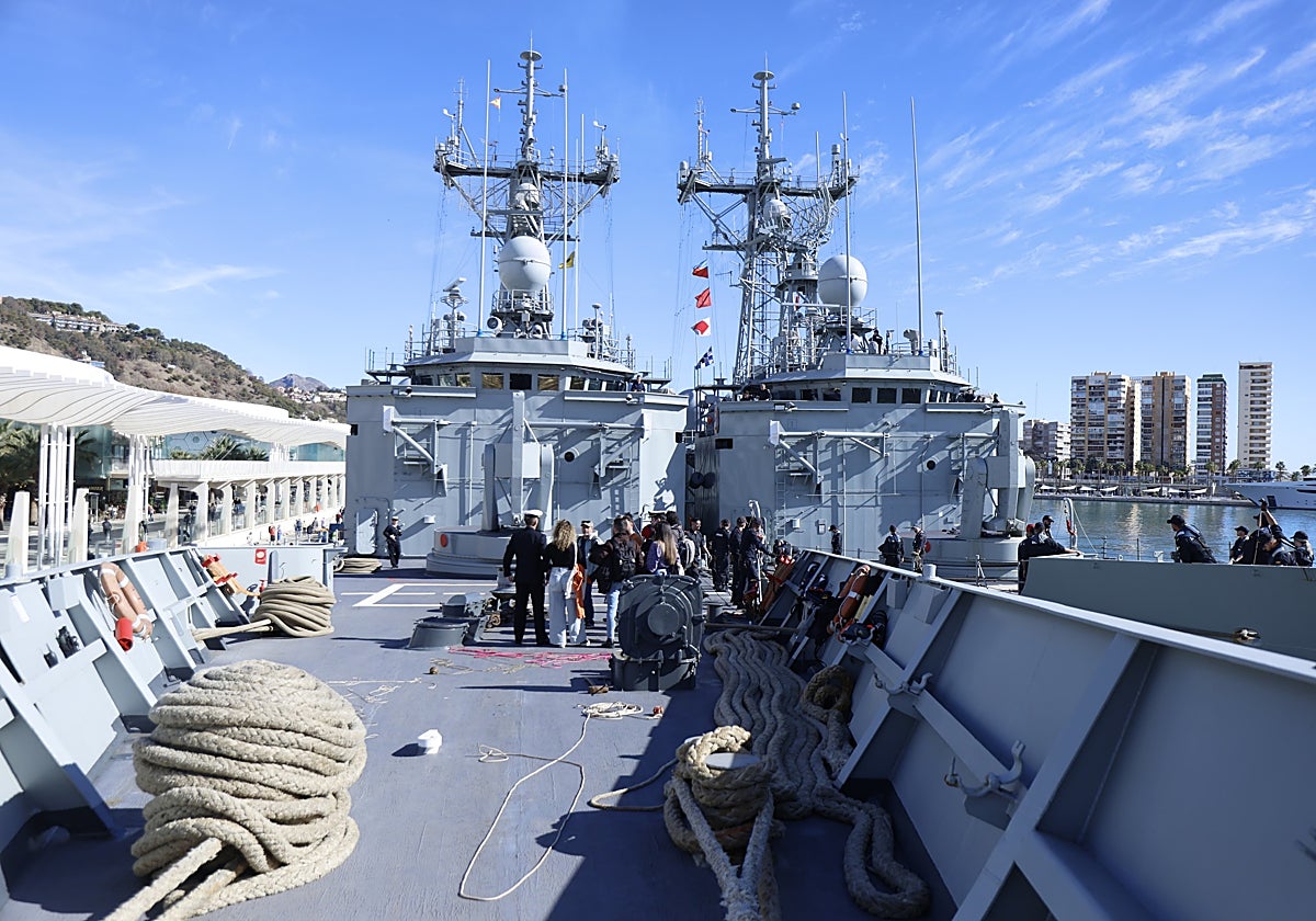 Four combat frigates at the same time, a crew of more than 750 people and the chance to experience first-hand what a military vessel is like. The ships Santa María, Numancia, Reina Sofía, and Navarra, belonging to the 41st Escort Squadron of the Spanish Navy, docked this Friday at the quay known as Muelle 2 of the port of Malaga. The four frigates have come from the waters of the Gulf of Cadiz, where they have taken part in an exercise. Two of these frigates can be visited on Saturday and Sunday, at different times.