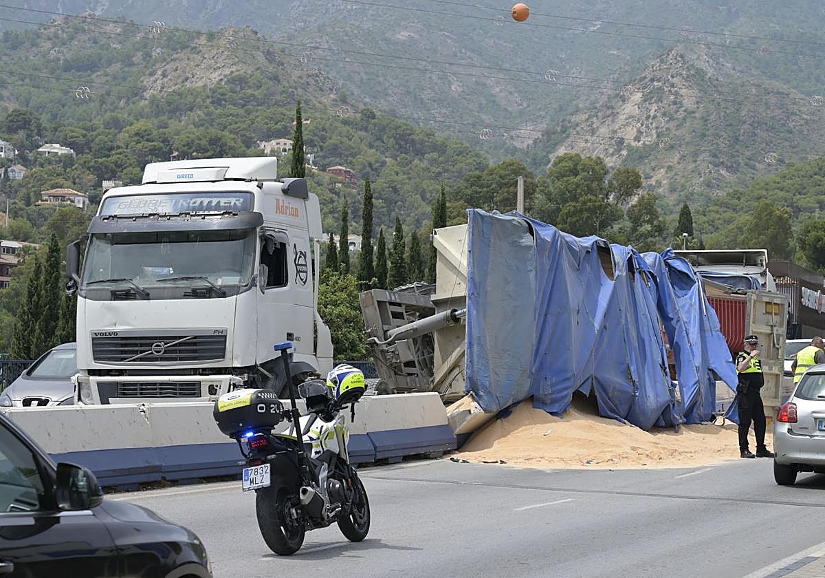 Chaos on the Costa as lorry loaded with sand overturns on one of the key access roads to Marbella