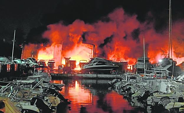 Passers-by and locals watched in amazement as the voracious flames devoured the warehouse where the firm Marina Marbella stored around 80 recreational boats and 15 jet-skis.