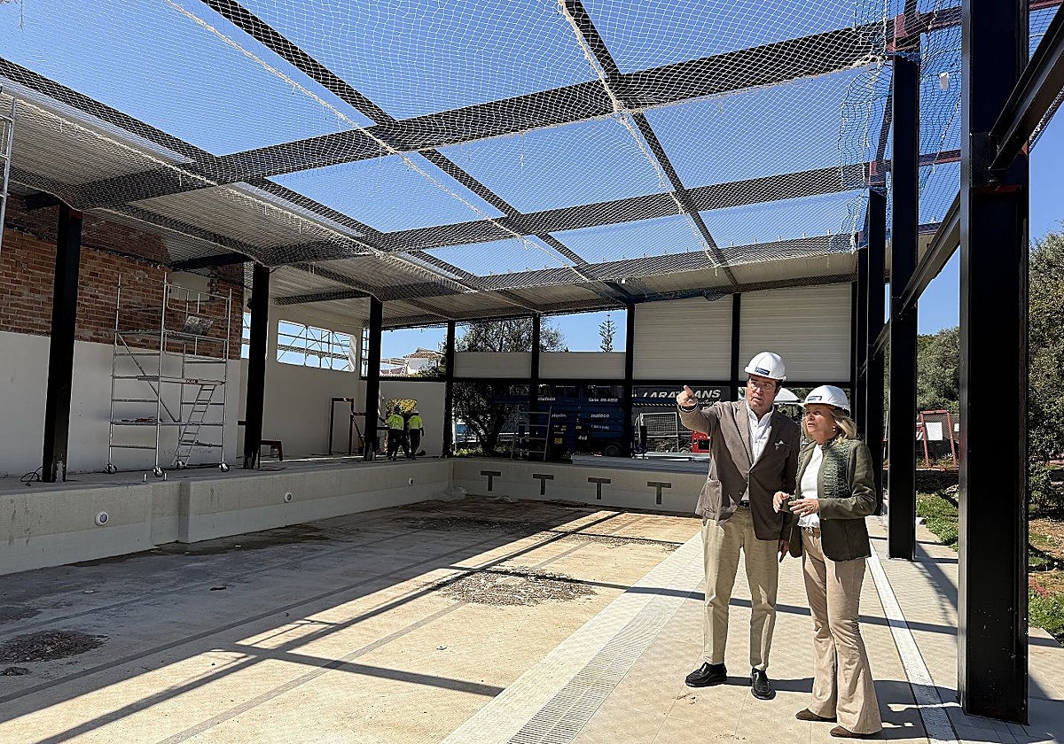 Mayor Ángeles Muñoz visited the site together with the district's general manager, Carlos Alcalá, stating that the six-month project is now nearing completion. The work includes the installation of a large roof over the existing pool.