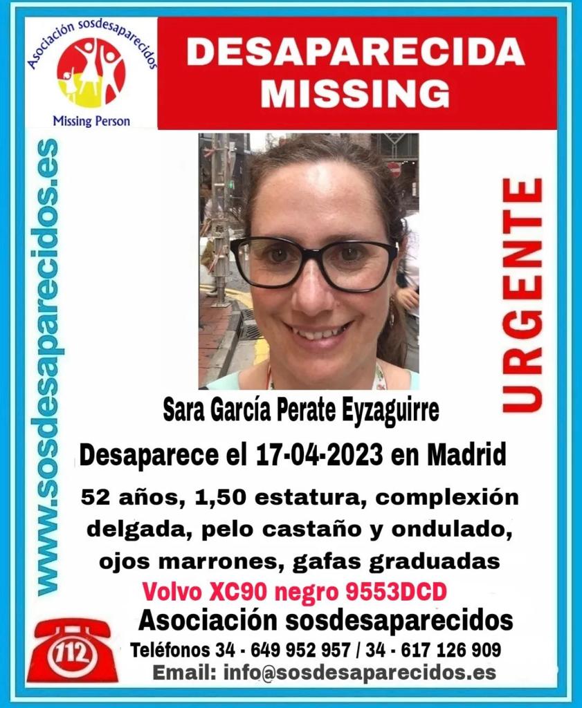 Sara García Perate Eyzaguirre, 52, was reported missing on 24 April by her son. The last communication they had was via WhatsApp when she told him that she needed to go to Madrid for personal reasons.