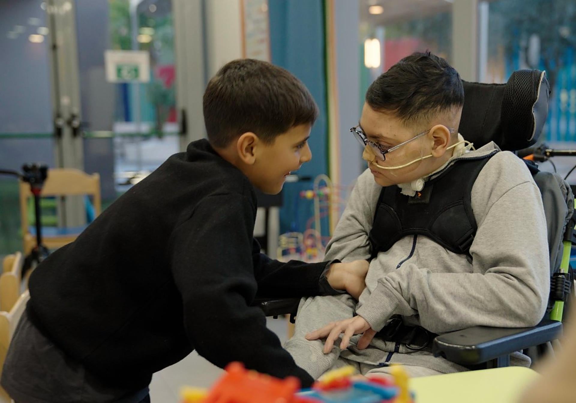 The first operation to remove the tumour and the subsequent months in intensive care left him with serious consequences: he entered the hospital on his own two feet, like any other child, and left in a wheelchair, without mobility from the neck down and unable to speak or swallow.