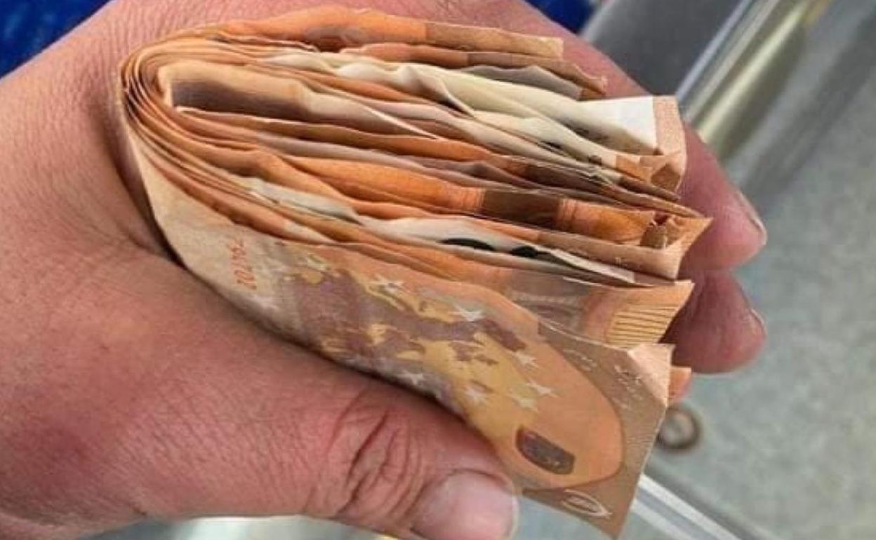 The four individuals in the car watched helplessly after the car boot sprang open and 50-euro banknotes, carried by the wind, were strewn across the busy carriageway