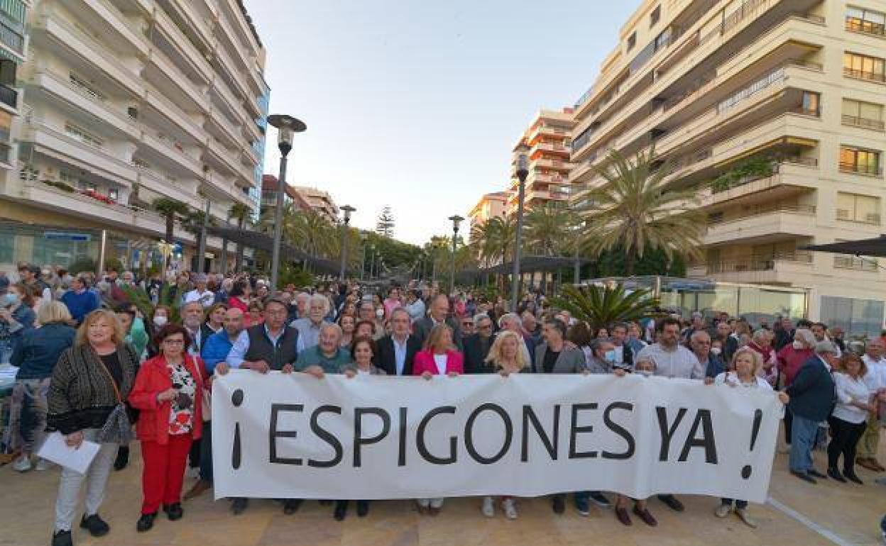 Despite the serious nature of the protest, there was a celebratory atmosphere with the group Arenal Duo providing the music and shouting 'Espigones Ya!' (Breakwaters Now!), the Marbella Platform for Beaches protest, which began at 8pm, attracted nearly a thousand people