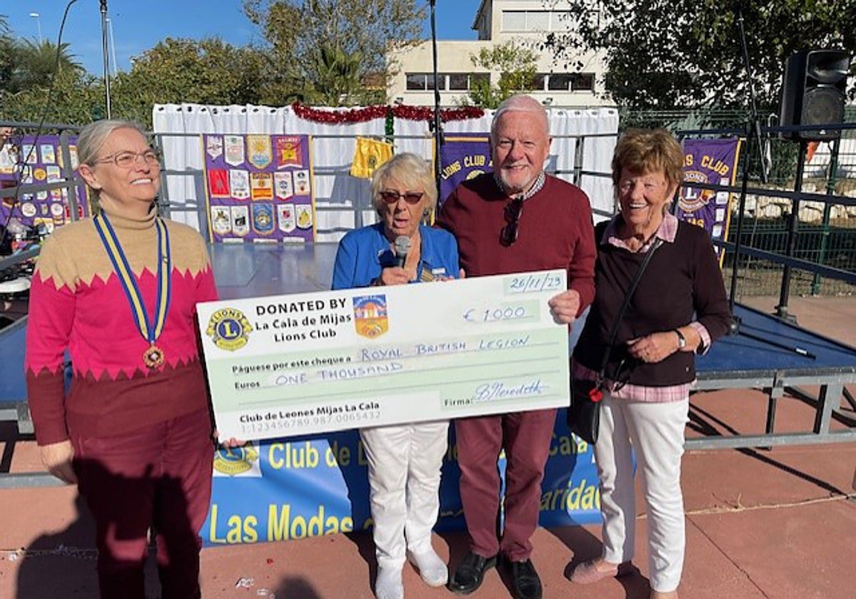 President Brenda Meredith used the occasion to present a cheque for 1,000 euros to the Alhaurín el Grande branch of the Royal British Legion.