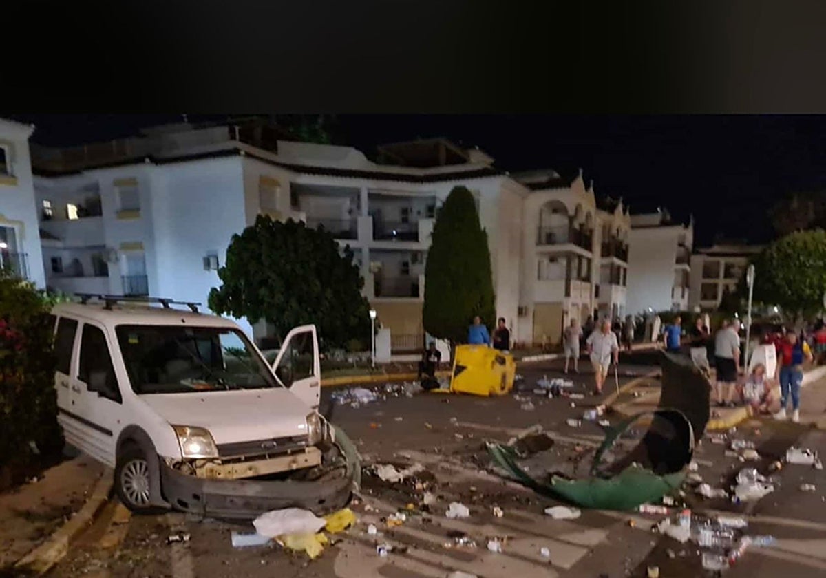 The motorist was driving down Calle Suecia in Las Lagunas on Sunday 18 June at about 11pm when he ploughed into the containers and then, according to witnesses, tried to leave the area.
