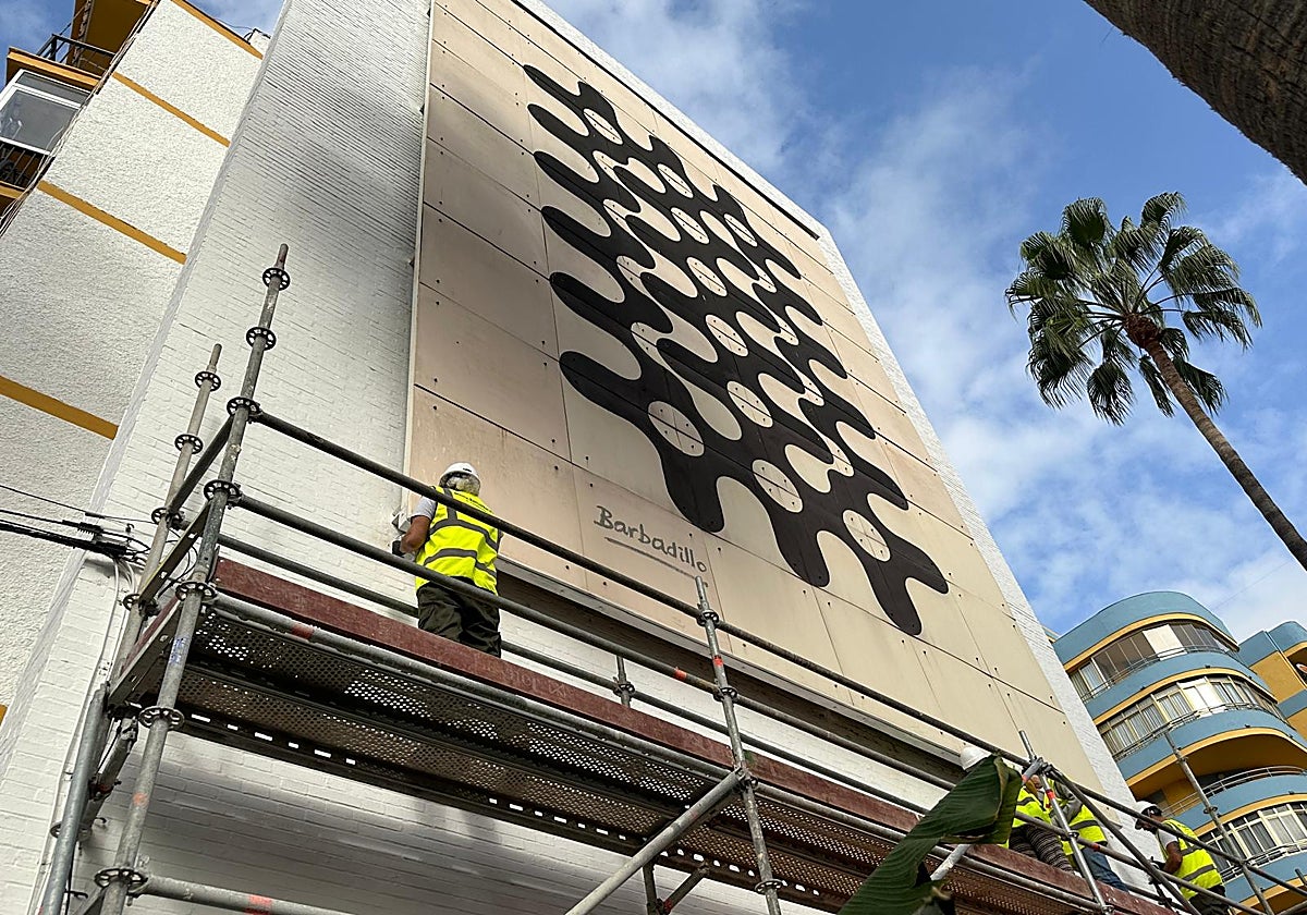 After the Barbadillo mural, municipal workers will move to the façade of Hotel Las Palmeras to work on the 'Liberación' mural, the work of Julio Leparc.