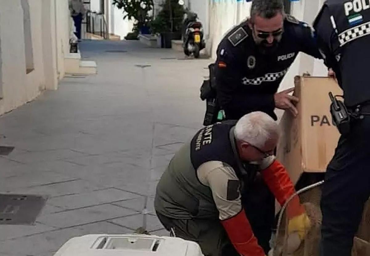 Locals and visitors in the heart Mijas Pueblo on Saturday were surprised by the appearance of a frightened griffon vulture, which was huddled against a wall on a busy tourist street. Concerned locals phoned the emergency services to inform them that the bird was in the middle of the street, and officers from the Local Police arrived at the scene to rescue the disorientated bird of prey.