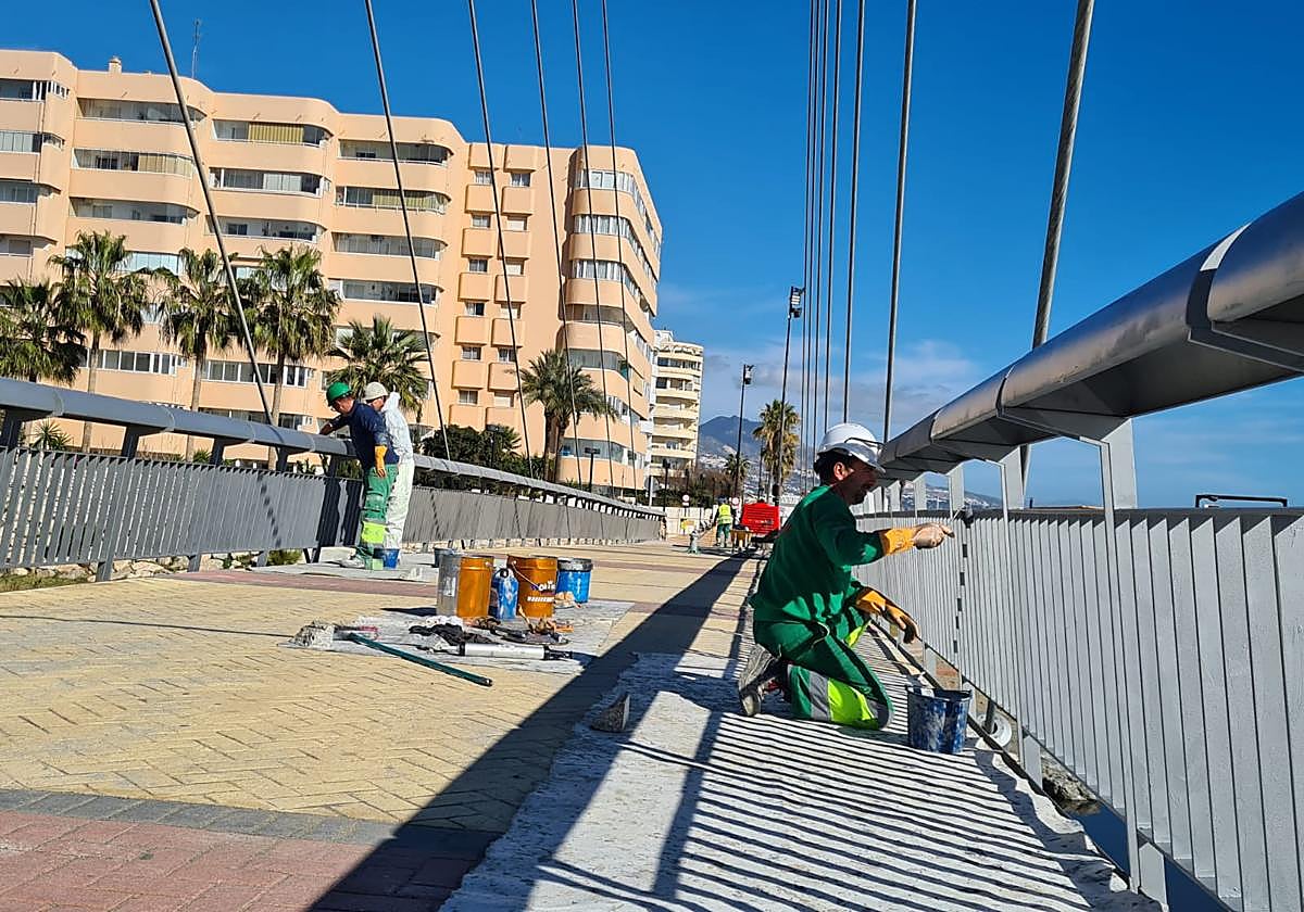 Inaugurated in 2006, the pedestrian walkway bridge, which connects the Sohail Castle area with the Paseo Marítimo, has been cleaned and repainted. The work is now focused on the tensioning of the steel wires that support the structure.