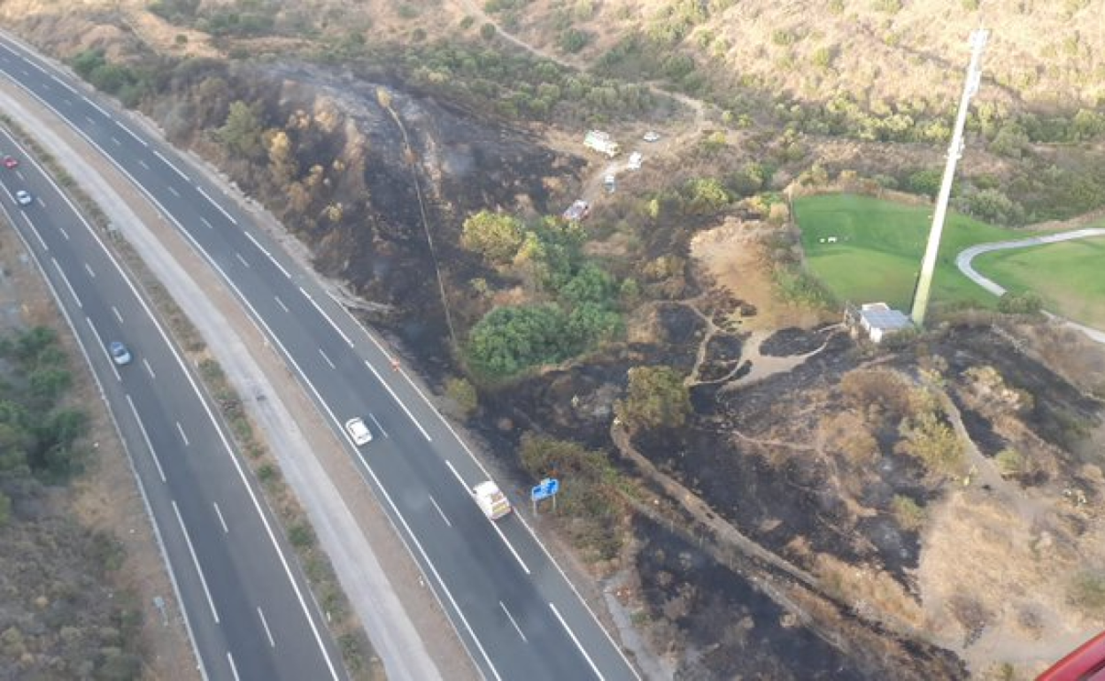 CONTROLADO a las 22.40 horas #IFMijas, #Málaga. Originado a la altura del Km-201 de la AP-7. Continúan en su remate y liquidación: 9 #BomberosForestales, 1 #AAMM, 1 autobomba pic.twitter.com/VVw426wlT0