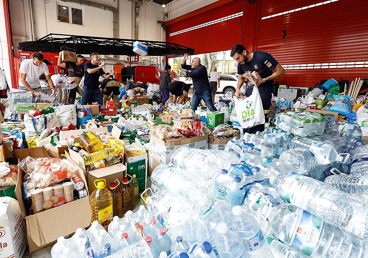 Not even the firefighters could believe it. "We were very surprised, we didn't expect so much in such a short time. It was immediate, things started arriving on Friday afternoon," explained Ernesto García Ballesteros, chief officer on duty. They were overwhelmed, with volunteers, outgoing staff and others who came to the facilities when they saw the amount of aid that was arriving. The goods are distributed in groups on the park floor and moved to one of the store rooms when there is no more room. On Saturday morning two shipments left Malaga for 'ground zero' of the disaster and more are being prepared. There are even fire stations that can no longer collect any more items because they are blocking the emergency exits.