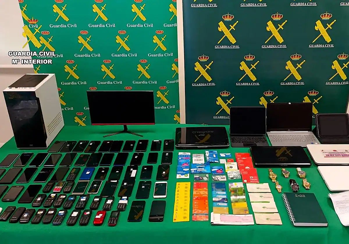The gang is responsible for at least 100 offences in Spain and another 30 across Europe, according to the Guardia Civil. Officers searched homes in Malaga city and Marbella and seized 70 mobile phones, a tablet, six laptops, one desktop, a colour printer, 85 SIM cards from different operators, bank documentation, credit cards, six luxury watches and 7,500 euros in cash.