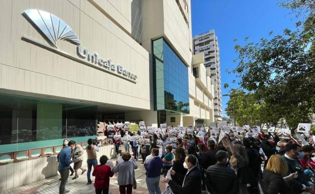 Customers who will have to make long journeys to get to a branch of the bank called on it to reconsider. Protesters said that Unicaja doesn't care about them now it has grown so large