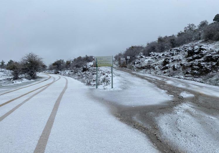 The rains of the last few hours are leaving a white blanket above 1,200 metres at the access to the area on the A-397 road between Ronda and San Pedro, which is still blocked by a rockfall on Saturday
