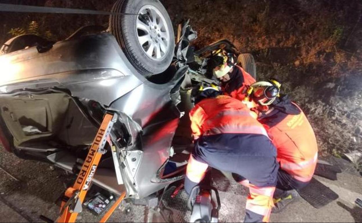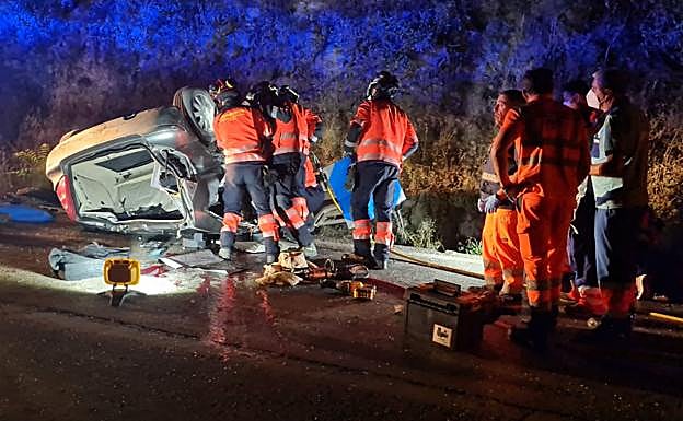 This second patrol car was the one that found the crashed Mercedes lying upside down in the ditch on the A-374. Inside were the three young men but they could do nothing to save their lives. Firefighters took almost four hours to recover their bodies after the car had plunged from the dirt track, some 10 or 12 metres above, onto the main road.