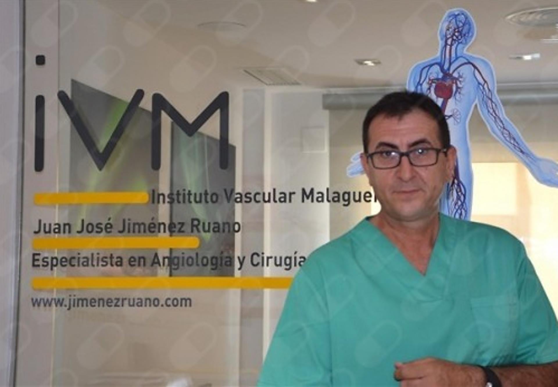 He has been practising in Malaga for 20 years at the Hospital Clínico Universitario Virgen de la Victoria, at the Clínica El Pilar and at the Instituto Vascular Malagueño, where he is the medical director. Dr Jiménez Ruano is a nationally recognised leader in angiology and vascular surgery and an expert in the treatment of varicose veins without surgery, as well as phlebo-aesthetics, vascular ulcers, diabetic foot, venous thrombosis - especially the deep-vein variety, lymphedema and lipedema, among others.