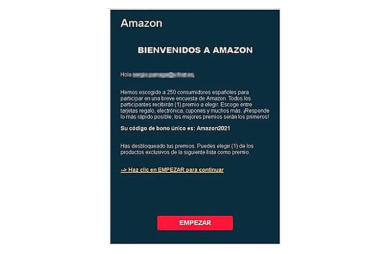 Other warning signs are: grammatical or spelling errors in the email, a domain other than Amazon in the sender (such as msn.comn, hotmail.com or yahoo.com), a URL address that does not contain the Amazon Pay domains (pay.amazon.es, pay.amazon.com/es, payments.amazon.com/es, authorize.payments.amazon.com/es or eu.account.amazon.com). If in doubt, do not click on the link in the message, but go directly to the official website and log in to check your account information. "If you are unable to access your account or notice anything suspicious, please let us know immediately," Amazon says. And if you have clicked on the link and/or provided any information, you should change your passwords immediately and check for fraudulent activity. Sometimes cybercriminals adopt stealthy tactics to avoid leaving a trail, such as buying gift cards at the victim's expense.