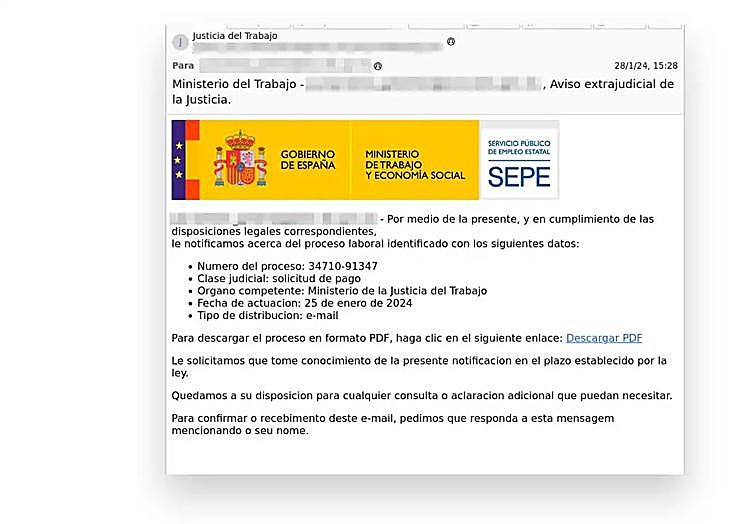 To do this, the victim is provided with a link that supposedly contains the download of the summons, but in reality it contains a file with malicious content.