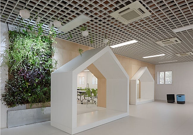 The project living classroom (aula viva) in early childhood education is part of the reform of classrooms in the faculty of education sciences in Malaga to adapt them to a new innovative teaching and learning model. Marisa González, Nerea Salas and Ferran Ventura directed the creation of a living classroom for early childhood education, where educational innovation becomes its own space. The project incorporates nature into the interior of the classroom with plant walls in a bid to instil a sense of calm and peace in pupils. It also has a roof that is constantly monitored to check in real time the improvement of air quality.