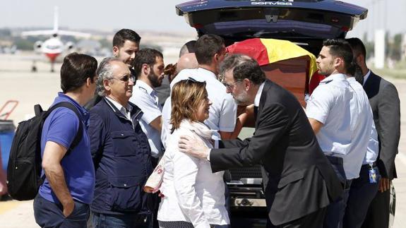 Echeverría's body was flown back to Spain in a Spanish air force plane on Sunday. Prime minister Mariano Rajoy met the aircraft at the Madrid air base and awarded Ignacio with a posthumous Gran Cruz del Mérito Civil, a medal for civil merit.