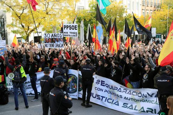 A campaign group made up of officers from both Guardia Civil and National Police, forces controlled by central government, has been arguing that regional forces, run by the autonomous devolved governments, get better pay. They want salaries to match the higher-paid Mossos d'Esquadra (in Catalonia), the Ertzainta (in the Basque Country), and some more fortunate town-hall-controlled Local Police.