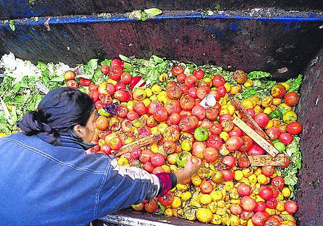 The supermarket workers carefully put the bags in the bin out of respect because they know this food is the livelihood of many families