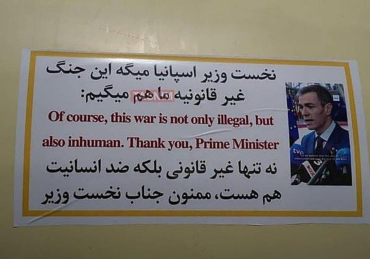 The images were posted by several Persian and Israeli media on Monday. They show a portrait photo of Sánchez on the casing of a ballistic missile, supposedly of the same model with which the ayatollah regime is bombing Israel.