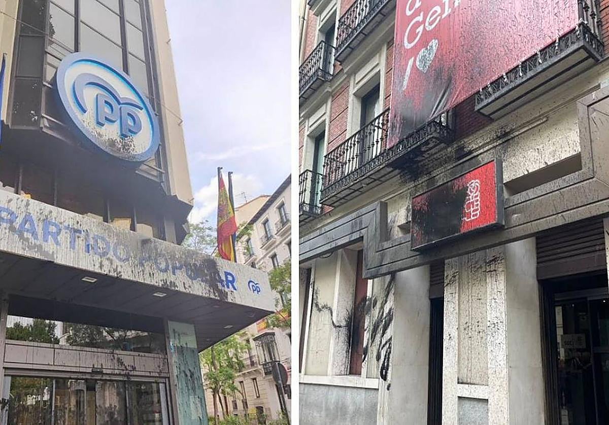 Environmental activists attacked the national headquarters of the PSOE and PP in Madrid with black paint on Monday afternoon. The simultaneous protest actions were carried out by members of the Futuro Vegetal group. At least five members of the group were arrested for vandalising the headquarters of the two main political parties in Spain.