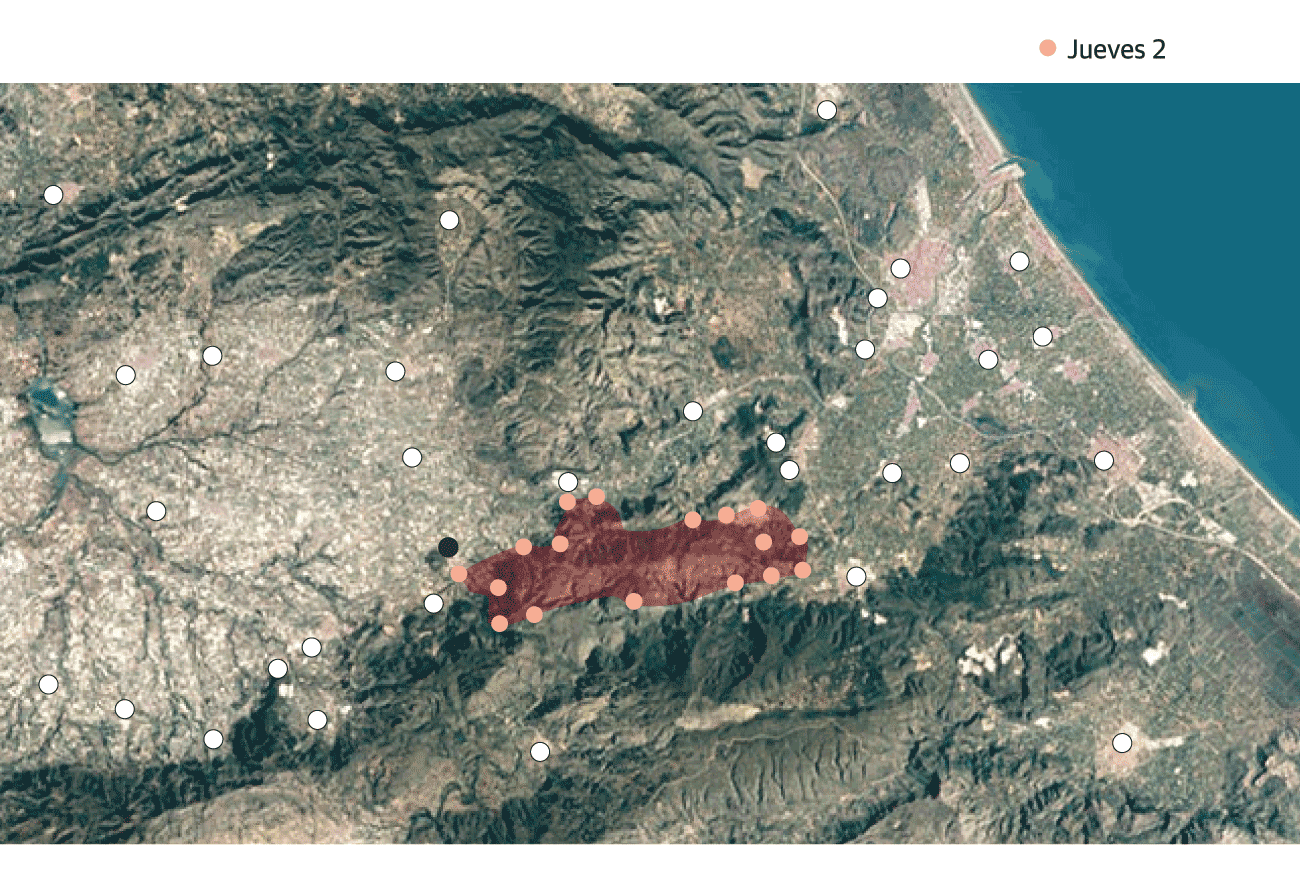 The director of extinction and chief inspector of the Provincial Consortium of Firefighters of Valencia, José Miguel Basset, said that the fire "is not stable" but "calmer" than in recent hours, and said that it has been possible to position personnel "safely" along the different "active fronts".