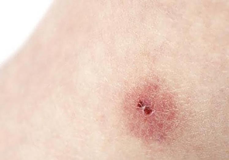 Tick bites cause a very characteristic lesion in the shape of a bullseye target. These little bugs should preferably be removed with tweezers, "always pulling upwards, although the ideal is to go to a health centre to have it removed by a doctor. If you remove it at home or outdoors, it is a good idea to keep it and take it to an outpatient clinic for identification." Their bites can transmit Lyme disease.