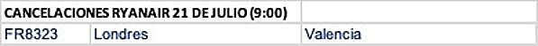 Spain's Unión Sindical Obrera (USO) trade union has detailed the cancelled and delayed flights this Thursday (21 July) due to another day of industrial action by 1,900 Ryanair cabin crew at the airline's ten bases throughout the country.