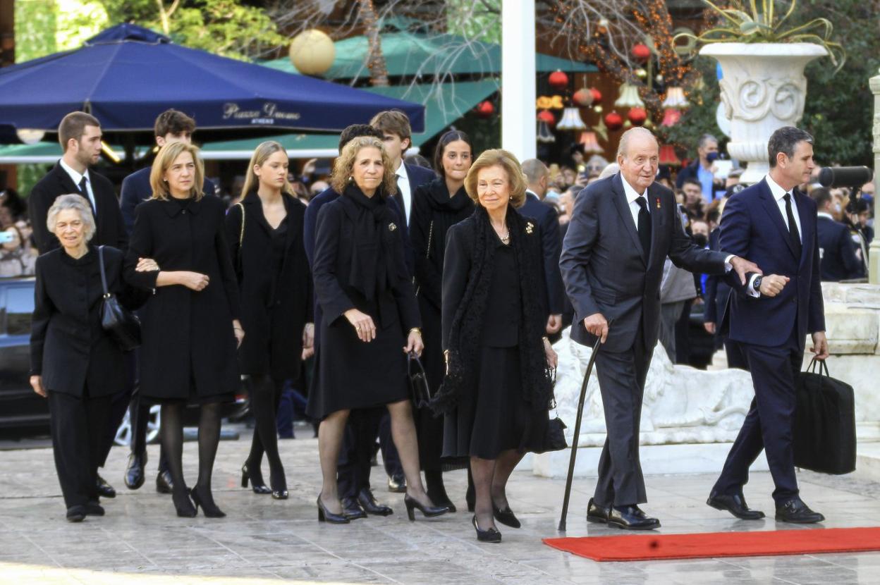 The funeral of Constantine II, the last king of Greece, and brother of emeritus queen Sofía, brought about a rare public reunion of the Spanish royals. Sofía was accompanied by former monarch Juan Carlos, as well as their daughters, Elena and Cristina, and their children. King Felipe VI and Queen Letizia arrived separately, but the monarch was later pictured affectionately greeting his father, an image not seen since 2020.